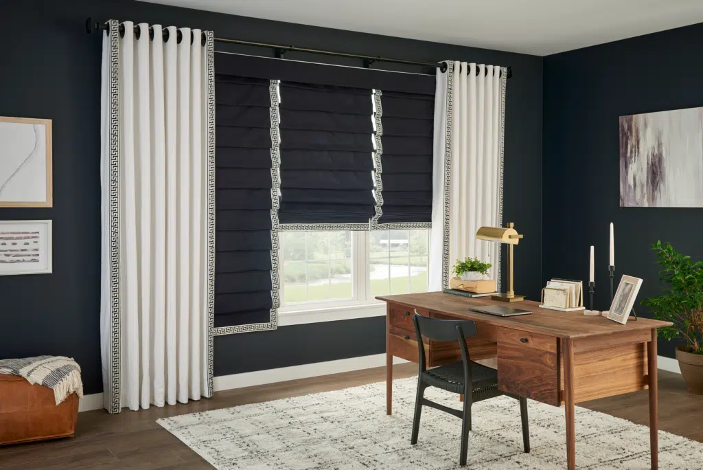 💡 Design Tip: Choose drapes in a complementary color to your shades to create harmony. If your shades have a bold print, opt for solid drapery to balance the look.